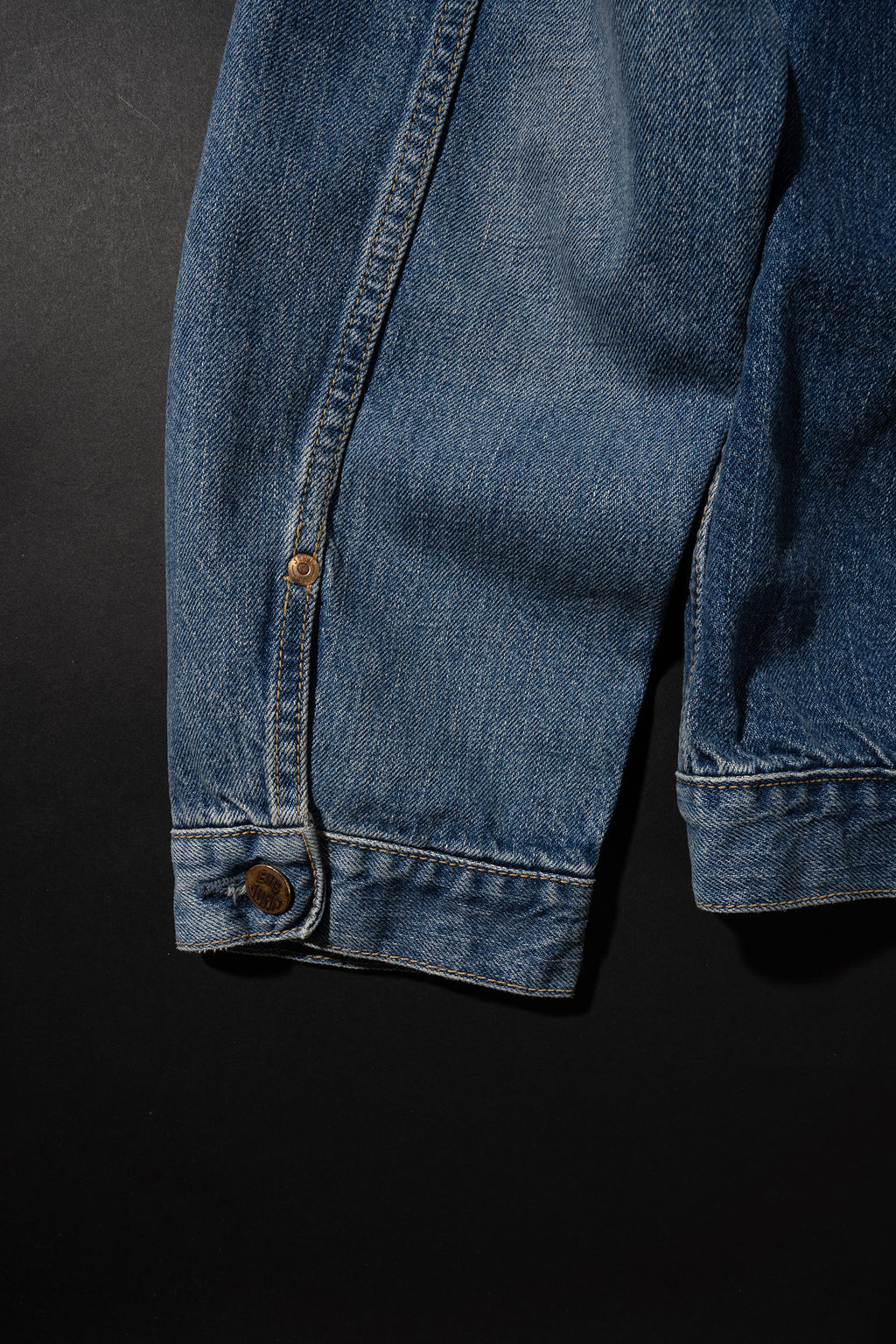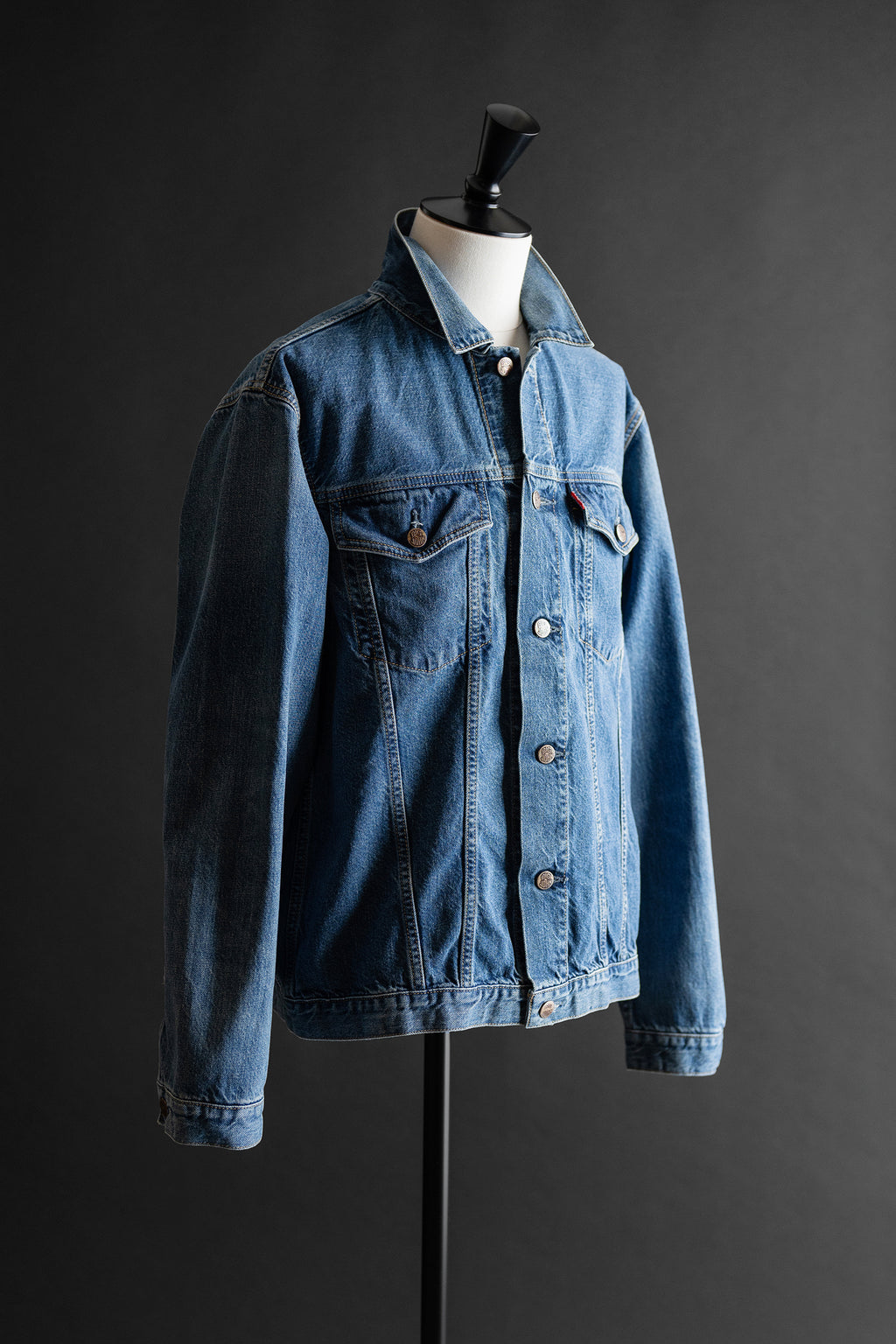 程よくゆとりのあるオーセンティックなシルエットで、デザインはシンプルなトラッカージャケット型を採用、幅広いエンドユースに対応します。袖口裏側にセルビッチを配しています。