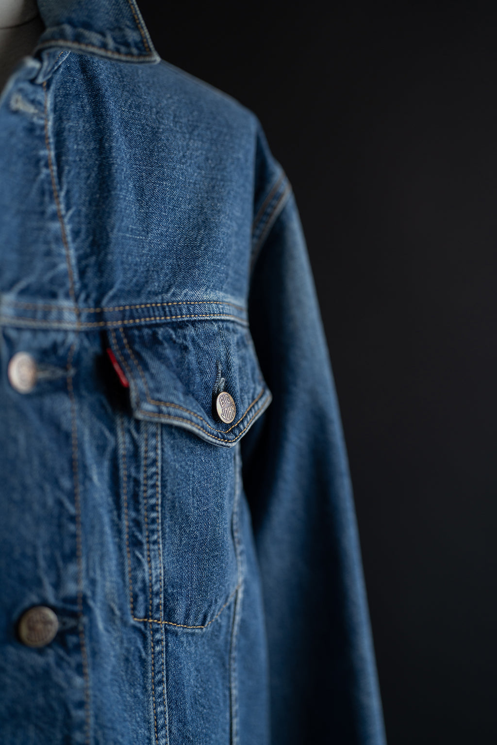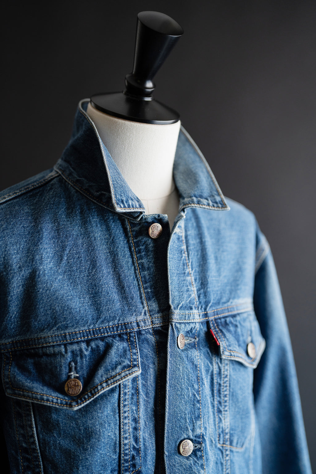 BIGJOHNオリジナルのボタン、リベット、織りネーム、ラベル、フラッシャー、下げ札を使用。
