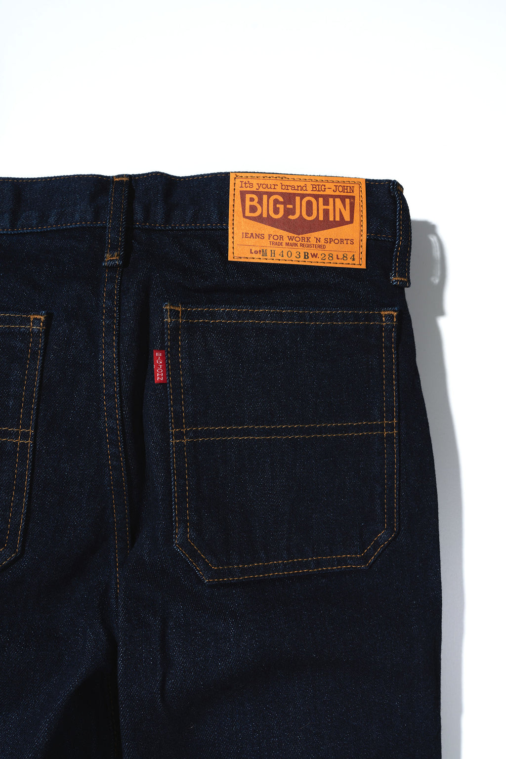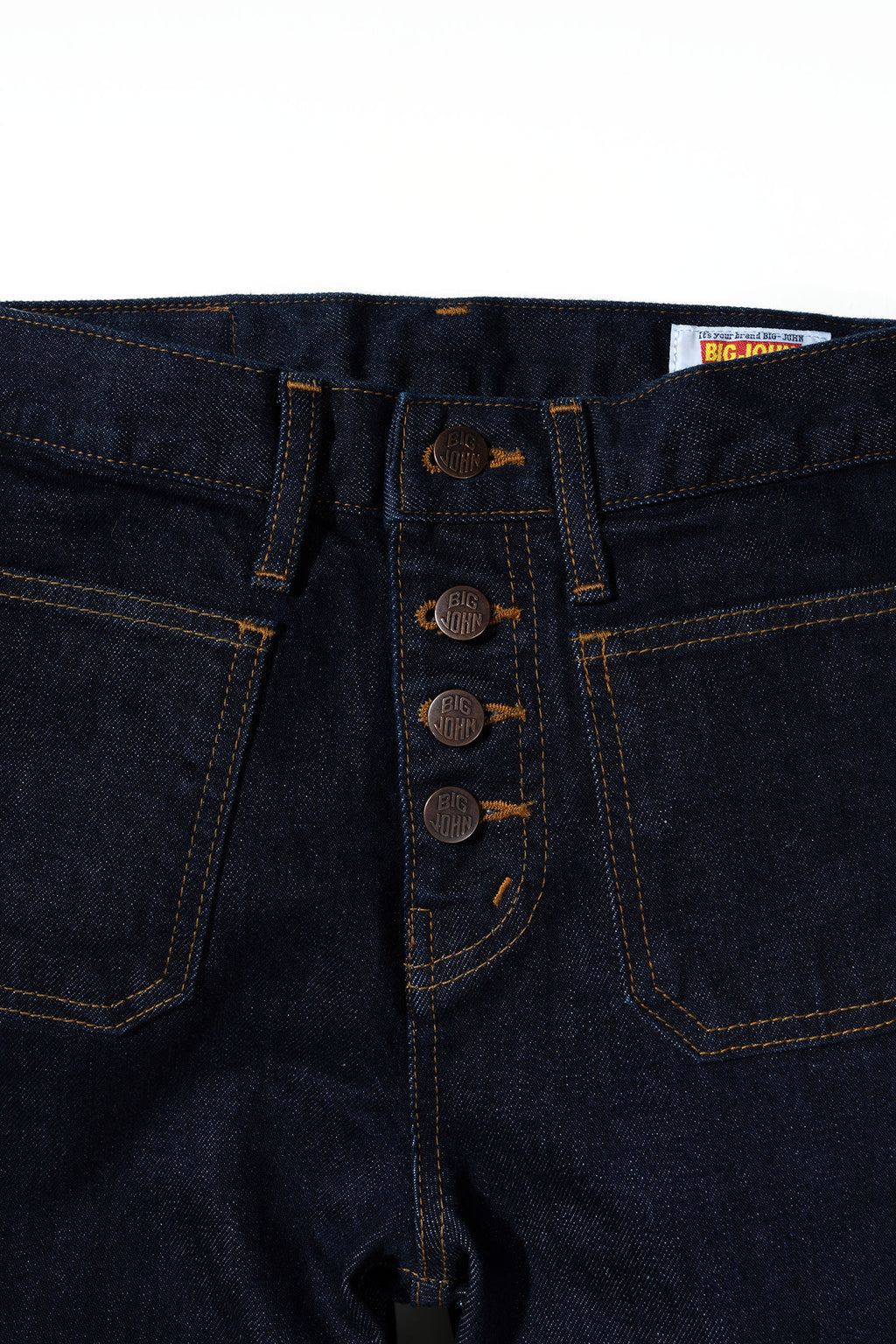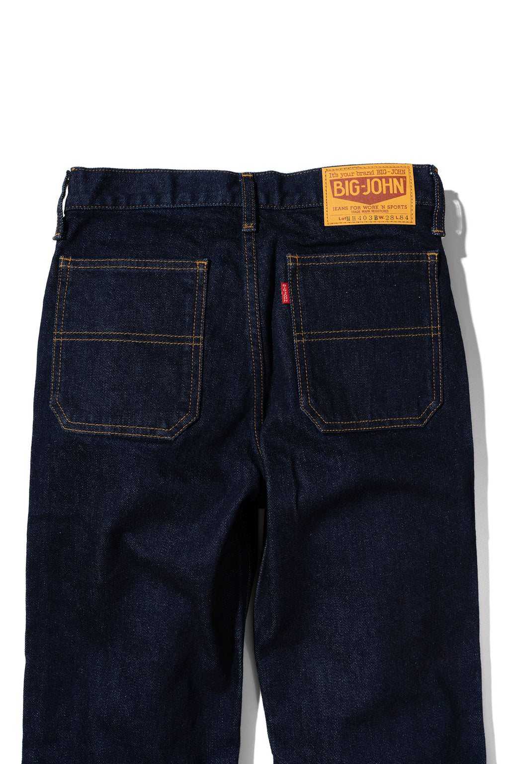 創業当時のデザインを踏襲したボタン見せのフロントオープニングに独特の雰囲気を醸し出すフロントのパッチポケット。ヒップポケットはビッグジョンのシンボルとも言うべきダブルステッチがあしらわれています。まさに'70年代を代表するアイテムです。